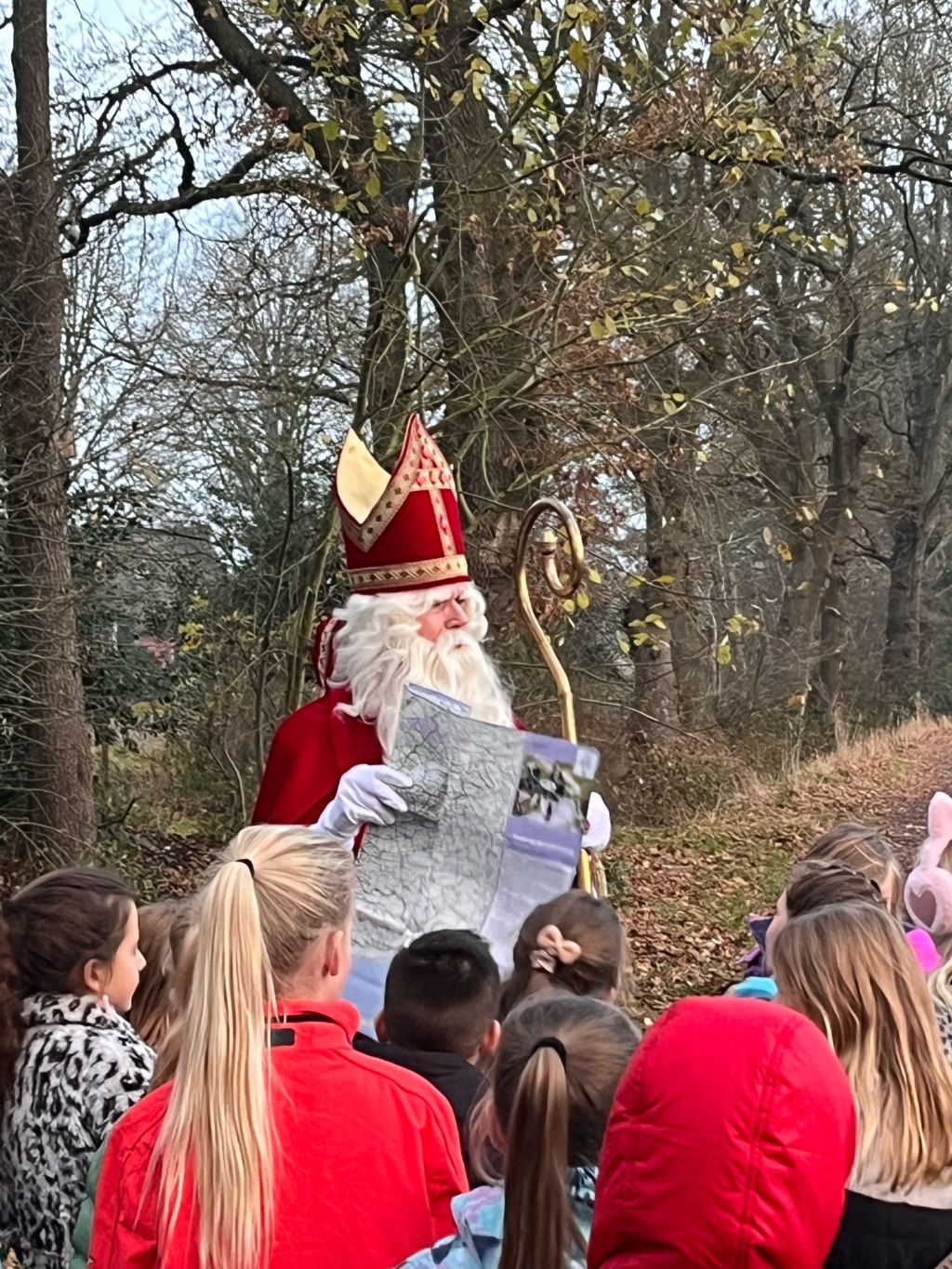 Op 5 december was het zover: Sinterklaas kwam naar school. Hij was alleen eerst even de weg kwijt... Met de landkaart per ongeluk op de kop stond hij in het gras achter de school. Met de hele school hebben we hem snel gevonden, waarna het feest kon beginnen.