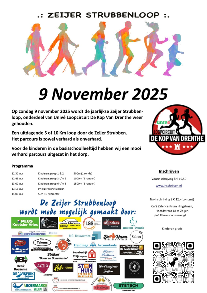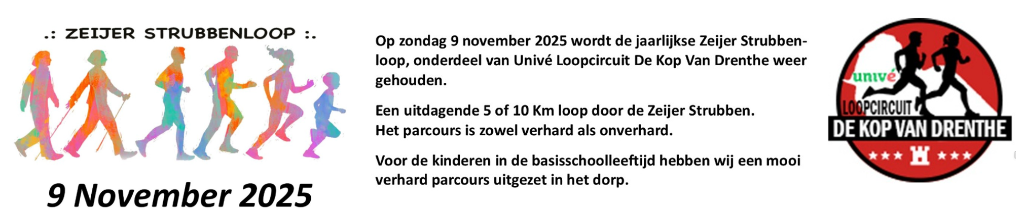 Dit jaar vindt de Zeijer Strubbenloop plaats op 9 november. LET OP: anders dan vorig jaar start de kidsrun om 12.30 uur.