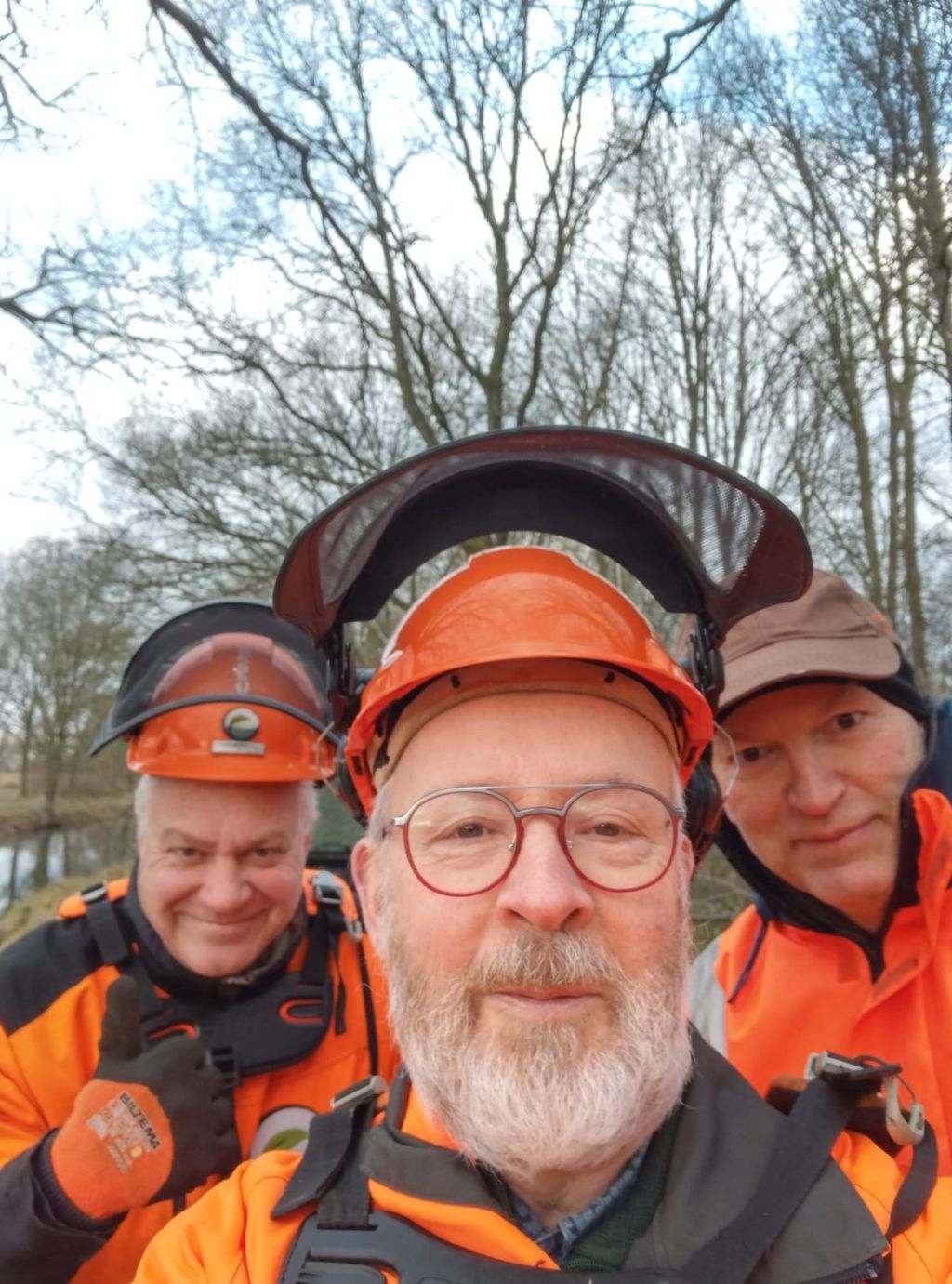 We zijn weer mooi opgeschoten. Langs de Wiek zijn een aantal ‘ halve manen’ aangebracht (deze zorgen voor licht & lucht en bevorderen zo de biodiversiteit) en is de begroeiing langs het pad wat teruggesnoeid. Ter hoogte van de zwaaikom zal wat nieuwe aanplant komen, vandaar dat ook daar het gevecht met de woekerende bramenchaos is gestart. Want het is soms een heel sportieve uitdaging om door die stugge, stekelige slingertakken heen te komen. Na een zaterdagochtendje Wieken heb je geen fitness meer nodig; de work-out voor de week zit er weer op. En het niveau is hoog. Zeer hoog. Olympisch hoog zou ik bijna zeggen. Die gouwe plak scheen ons al heerlijk warm toe.