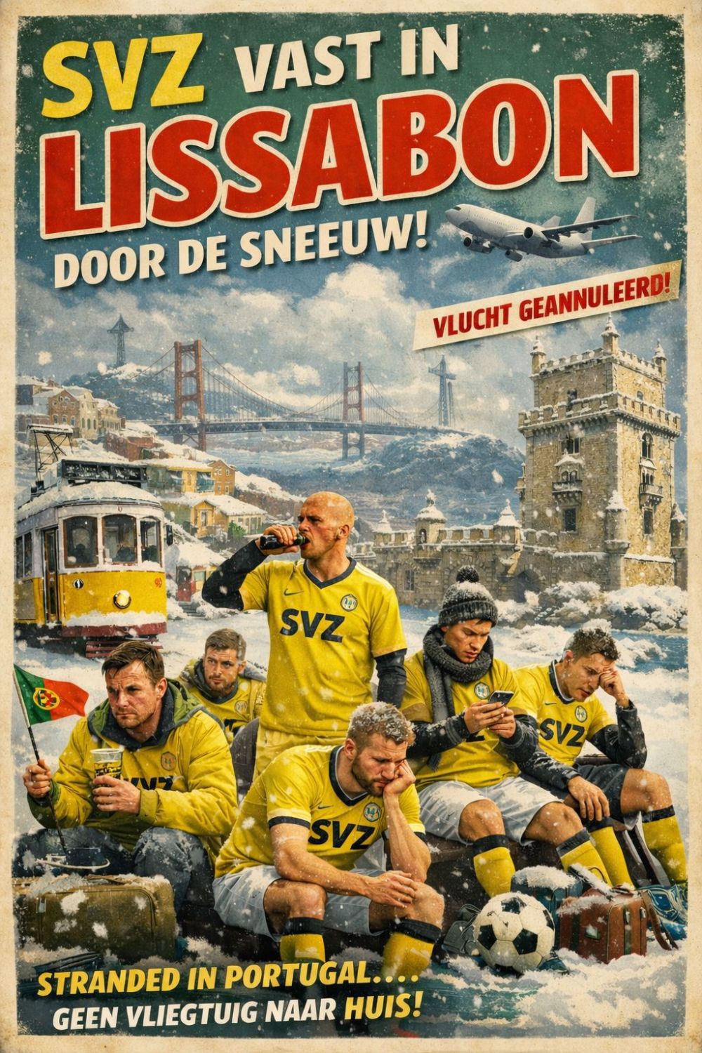 Vanwege de heftige sneeuwval is onze terugvlucht van maandag 5 januari omgeboekt naar zaterdag 10 januari. Daarom moeten wij het trainingskamp in Lissabon met bijna een week verlengen. Dit brengt natuurlijk veel extra kosten met zich mee. Mocht u na de dure feestdagen nog wat geld over hebben om ons te sponsoren in het bekostigen van onze trainingsfaciliteiten, zijn wij u erg dankbaar!