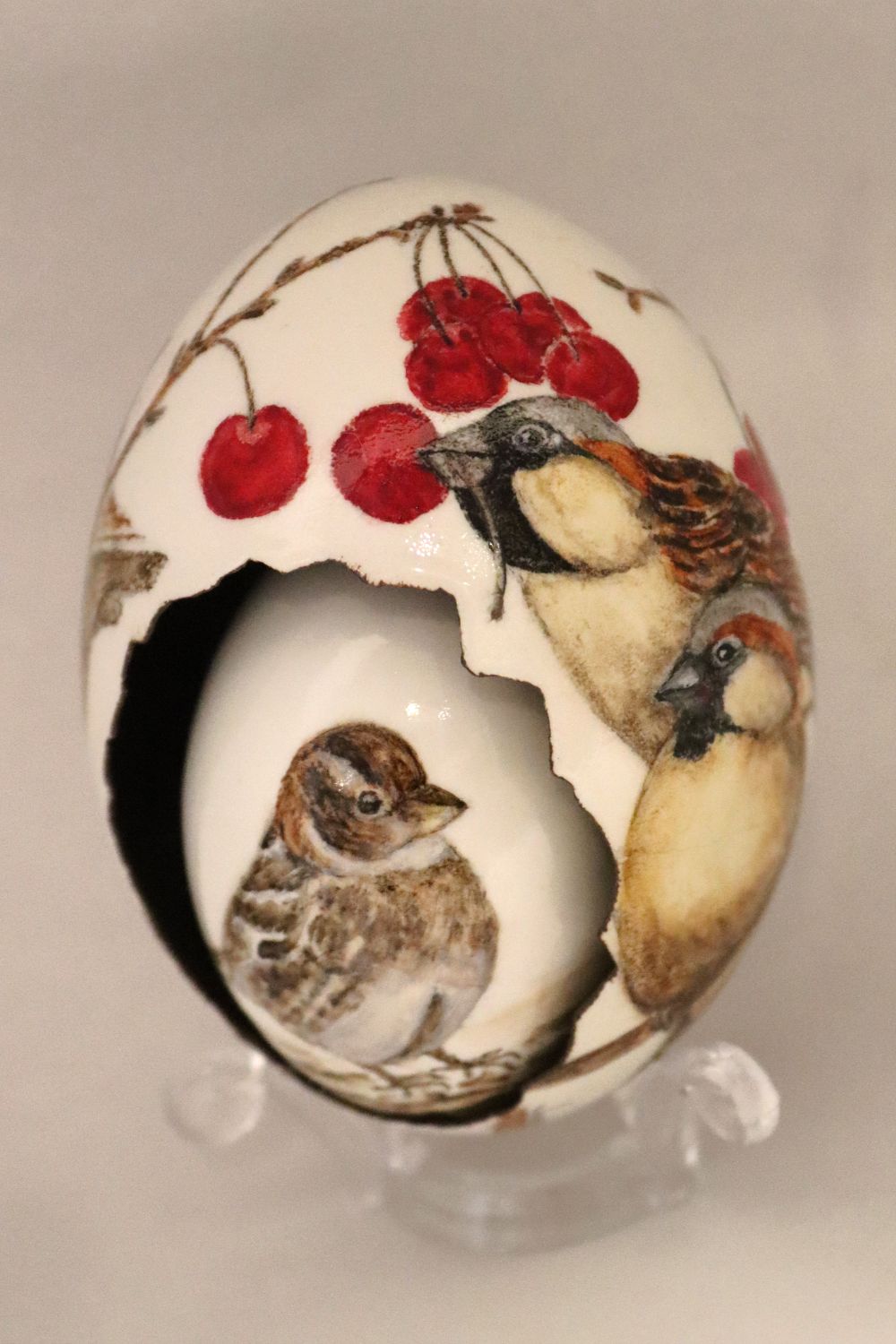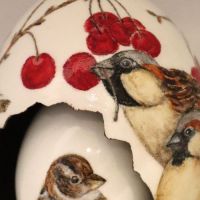 Woensdag 18 maart demonstraties bewerken van eieren door Willemien Voskamp. Ei verstopt in een ei en beschilderd.
