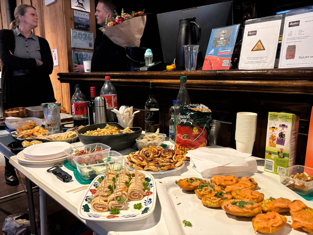 Iedereen neemt zijn eigen hapje en drankje mee en het was weer reuze gezellig.