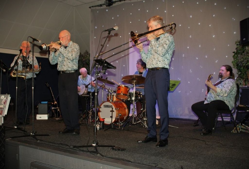 “Jazz uut den Achterhook” is al jaren lang het handelsmerk deze van de in 1999 in Dinxperlo opgerichte band die wij ontvangen in de sfeervolle feestzaal van café-restaurant Hingstman in Zeijen.