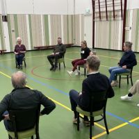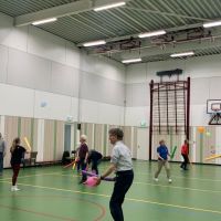 Na zo'n uurtje theorie wordt er nog een uur bewogen in de gymzaal.