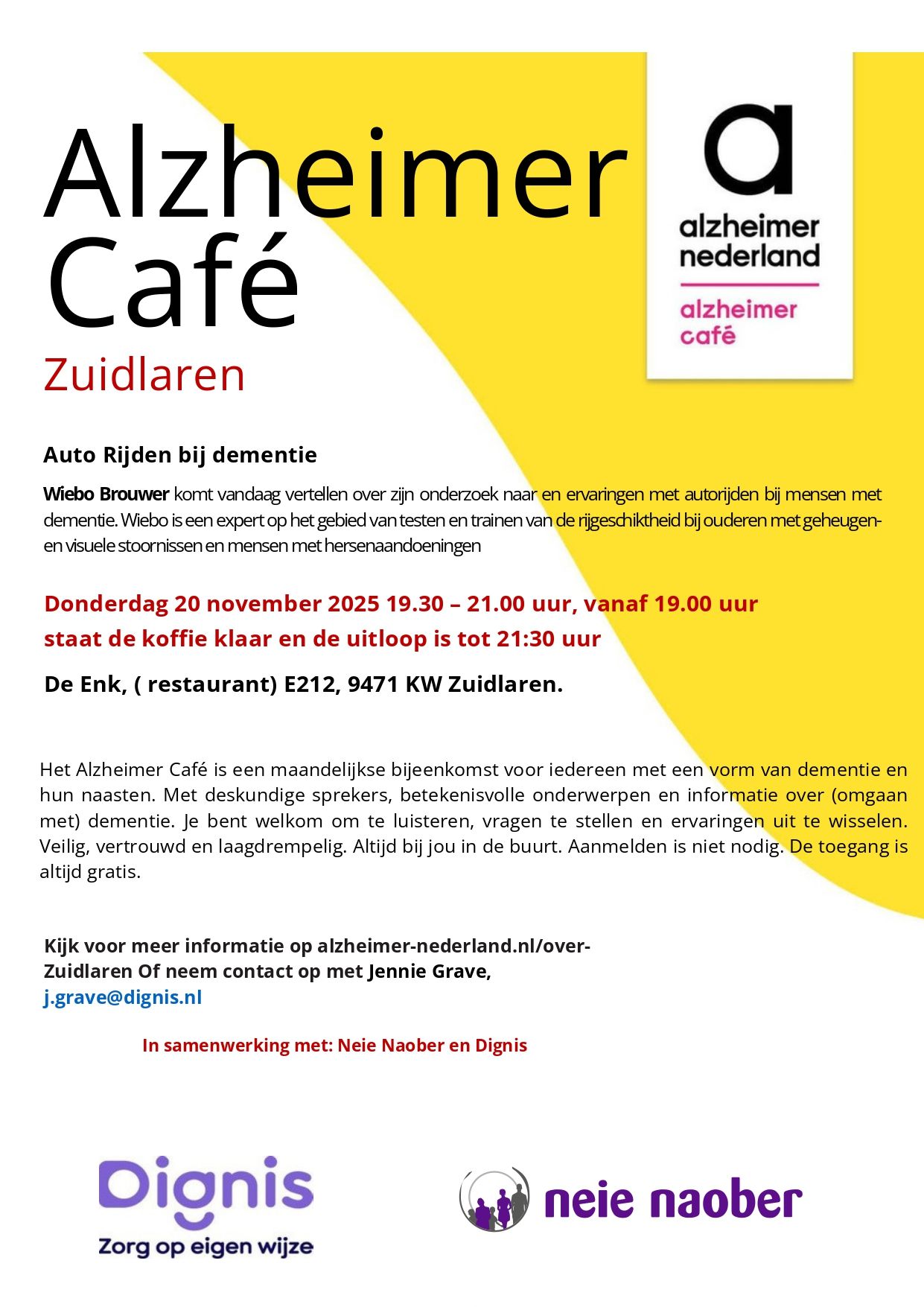Aanmelden voor het café kan via deze webpagina van ecdrentseaa.nl of door te bellen naar 0592 26 66 62 (gemeente Tynaarlo). |