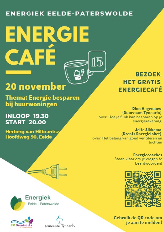 Heeft u een huurwoning en bent u benieuwd hoe u kunt besparen op energiekosten? Kom dan naar het energiecafé op donderdag 20 november in Eelde. Huurders krijgen dan informatie en tips over hoe zij energie kunnen besparen.