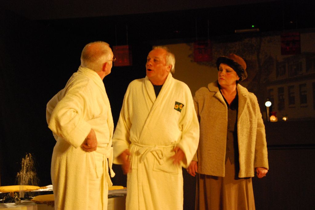 Vrijdag en zaterdag heeft Spotlicht weer een spetterend optreden gegeven in zalencentrum Hingstman. Het stuk "Ik wil Mjoessof spreken" van Valentin Katajef werd vol enthousiasme opgevoerd. Het komische stuk speelt zich af in kuuroord "De Zonnebloemen". Wie eenmaal in dit kuuroord heeft gerust, zal nergens anders meer rust vinden". Vandaag is het alles behalve rustig voor de gasten. In een reeks van komische verwisselingen staat de zoektocht naar een handtekening voor 50 liter verf voor een kindertehuis centraal. Zal het Zaitjsef lukken? Zullen Kostja en Klara toch elkaar weer krijgen? Wat speelt er tussen dokter Kirilof en Vera Karpofna? Zal Mjoessof de wraak van professor Doetkine overleven? |
