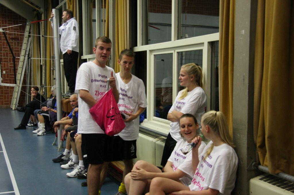 11 en 12 okober is weer het jaarlijks terugkerende Stratenvolleybal tournooi gespeeld. Maar liefst 12 ploegen, en dat is het maximale aantal, deden mee. Jonger, ouder, ervaren, niet zo ervaren en "niet" volleyballers; iedereen deed mee. Met elkaar, en onder leiding van Ella Wever en Erik Heling, maakte iedereen er weer paar leuke avonden van. Gelukkig zijn er dit jaar geen blessures geweest. Volgend jaar even geen Stratenvolleybal, want als alles volgens planning verloopt is er dan geen sporthal meer in Zeijen. Maar 2014 staat wel al weer in de agenda! De uitslag was als volgt: 1. Margrietstraat (16 punten) |