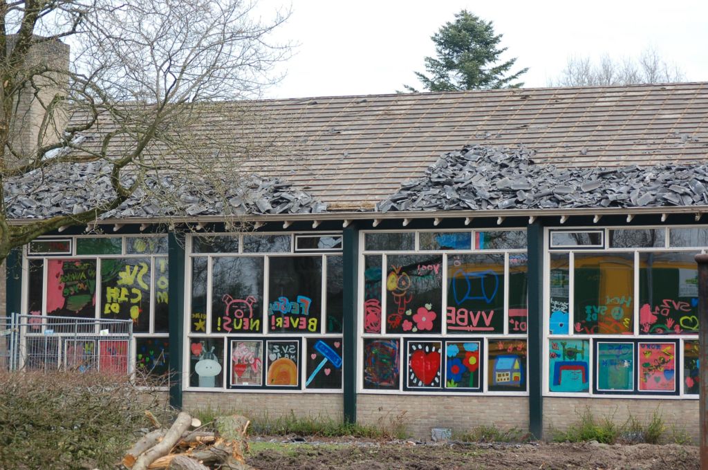 Het is nu echt begonnen, de dakpannen rammelen op de daken, de gordijnen hangen er verloren bij, de dakgoten liggen opgekruld op het dak.
