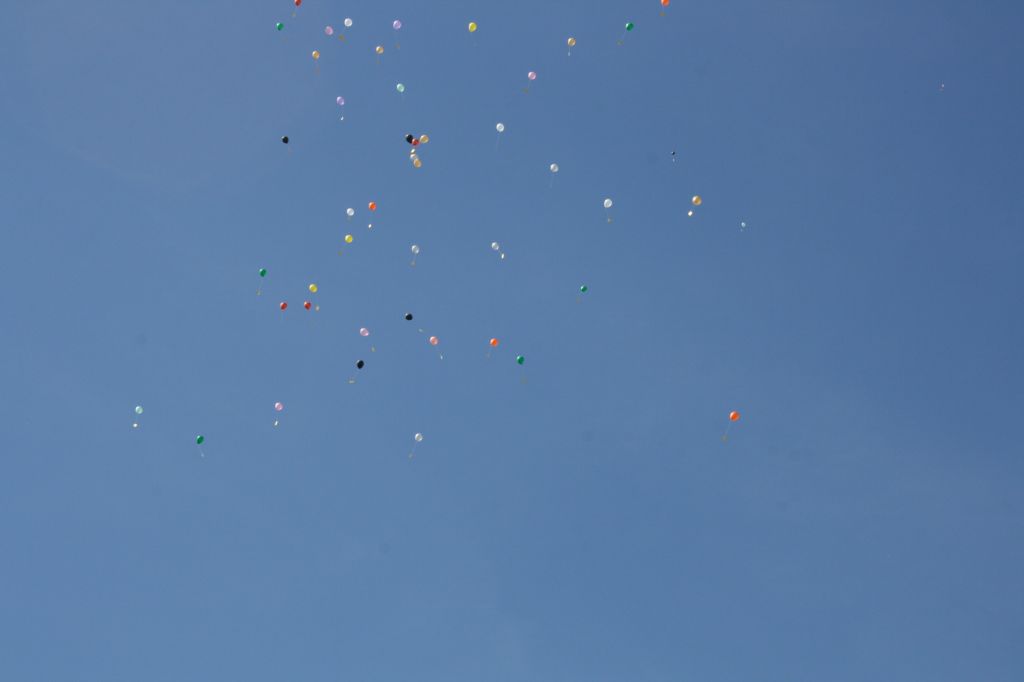 Toen iedereen zijn dier had mochten de kinderen naar buiten waar iedereen een ballon mocht oplaten.