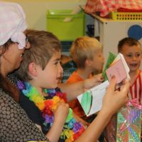 school. Het was een groot feest. De klas werd in groepjes verdeeld. De eerste groep ging eerst spelletjes spelen de andere groep ging op speurtocht, na het cake versieren en eten natuurlijk werd er gewisseld.