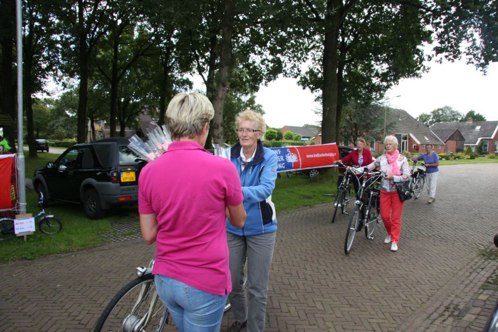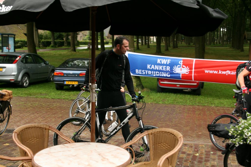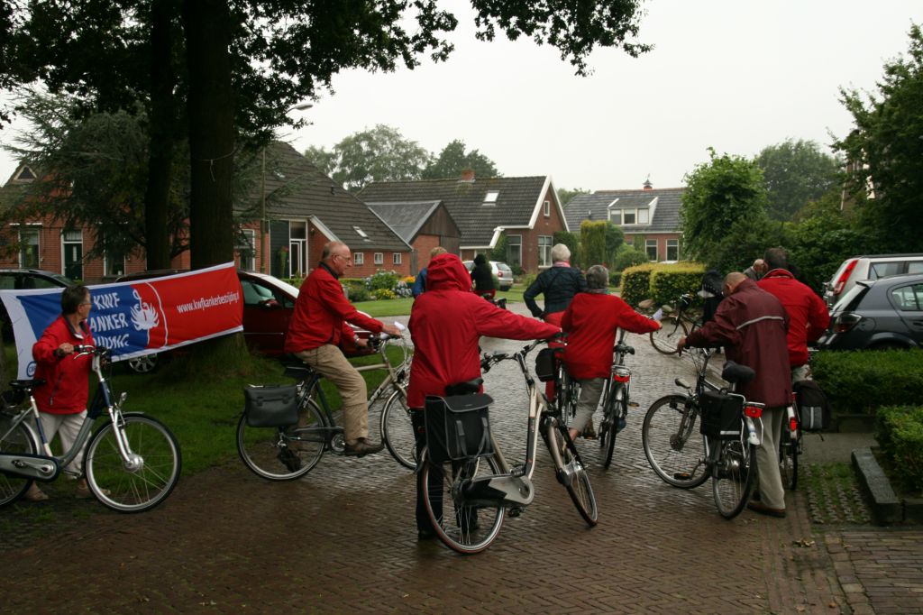 De zondag begon met een niet al te beste weersverwachting, daarom was de starttijd al verruimd, voor diegenen die na de buien wilden starten.Wij als organisatie hadden er een hard hoofd in of we wel deelnemers zouden krijgen, maar gelukkig hebben velen het weer getrotseerd en zijn toch komen fietsen voor ons goede doel KWF Kankerbestrijding. Dat we toch nog ongeveer 190 deelnemers hadden viel ons erg mee en wij willen dan ook iedereen bedanken die, ondanks de regen, toch heeft meegefietst en ons geholpen om weer een mooi bedrag bij elkaar te verzamelen voor ons goede doel. Ook bedanken we iedereen die even langs kwam om een donatie te doen zonder te mee te fietsen.