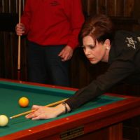 Bij de Zeijerstoten vielen op de in het goud gehulde "pittige" dame Petra en de bescheiden ogende Leonie . Beide dames wisten ook hun twee partijen te winnen, waarbij Leonie op het grote biljart zelfs Oom Jan Emmens, voor ons toch wel onverwacht, de baas ( beter gezegd bazin ) was. Zo zie je maar hoe een mooi wicht ook sportief onbescheiden kan zijn.