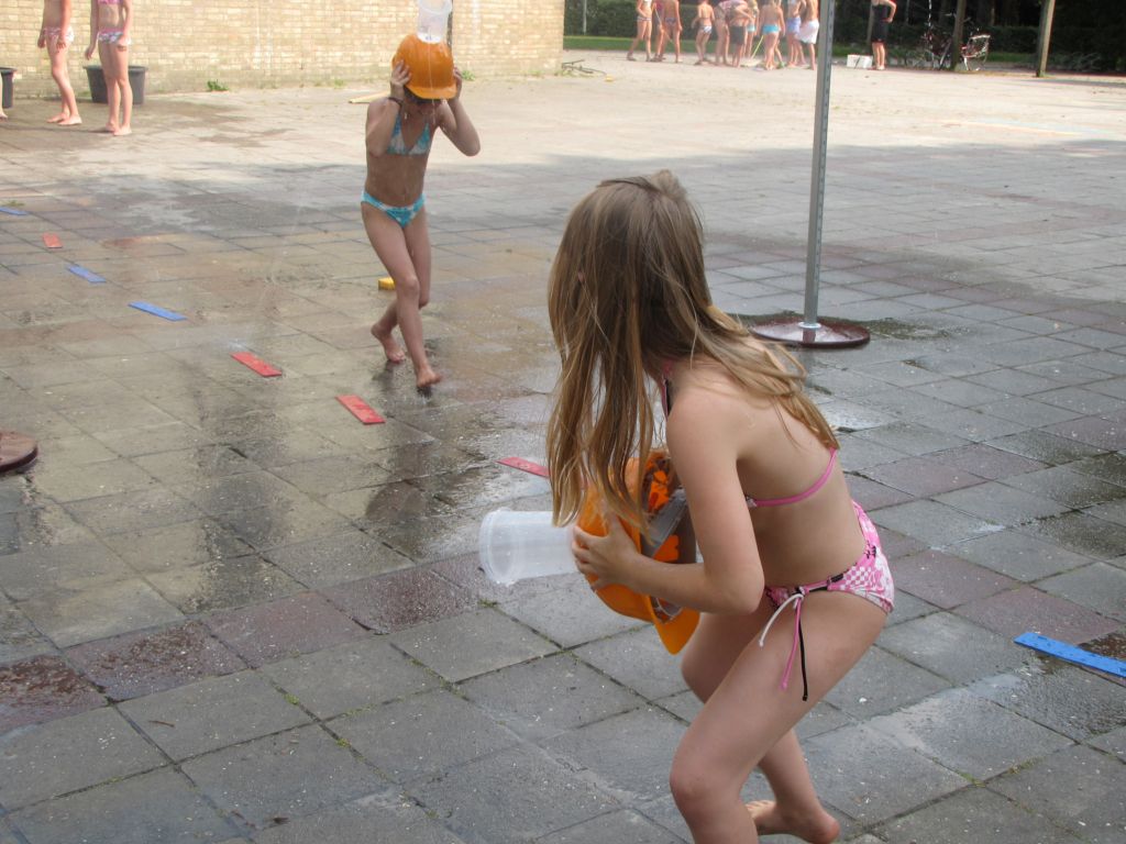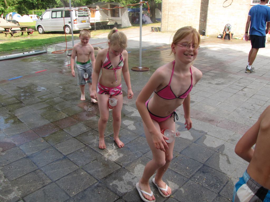 Om ongeveer 16.00 uur druppelden de kinderen het kamp binnen. De meeste tenten bleven nog even in de tas want er moest voetbal gekeken worden. Na een spannende wedstrijd Nederland - Brazilië konden de kinderen dan eindelijk samen met ouders/zussen/broers hun tenten opzetten. Voor de kinderen (en begeleiders) die de wedstrijd niet wilden volgen waren er verschillende leuke spelletjes. Door het weer natuurlijk een hele hoop waterspelletje wat naast het vele plezier ook voor heerlijk verkoeling zorgde.