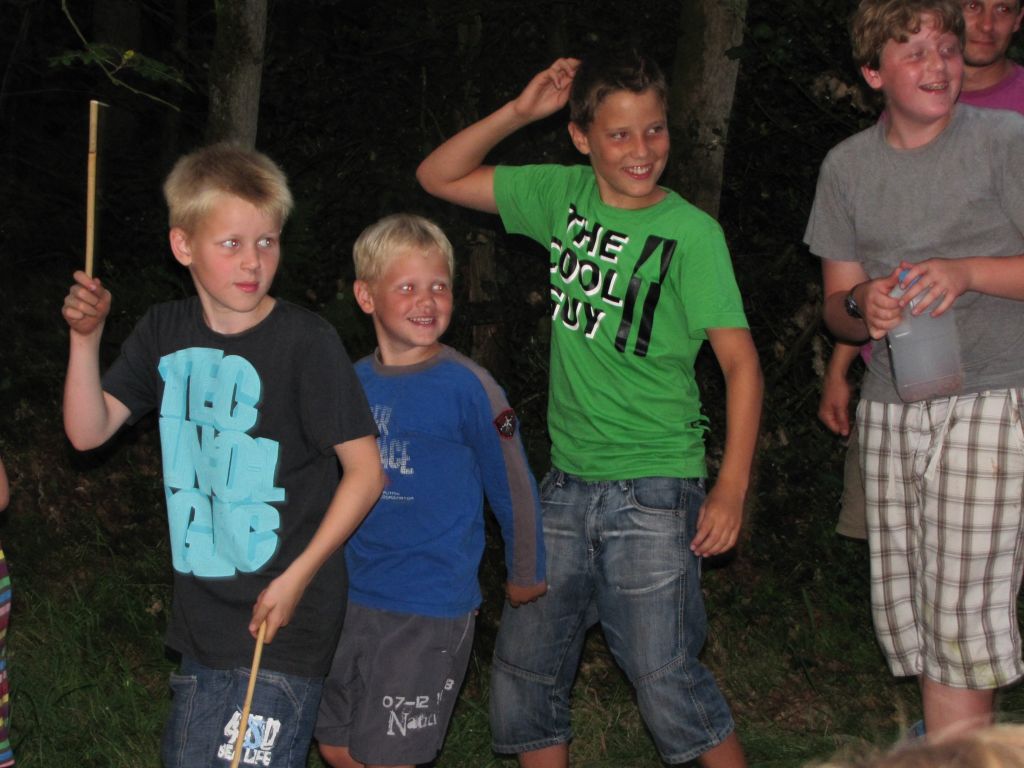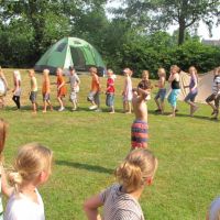 Terwijl sommigen kinderen net het kussen roken werden de eerste vroege vogels alweer wakker. Na het ontbijt, wat weer geweldig geregeld was, gingen de kinderen op Safari. Per groep werden er kennisvragen gesteld, Afrikaanse spelletjes gedaan zoals waterdragen, kettingen van doppen maken en er was een heuse banananboom waar de kinderen bananen uit konden plukken. Bij de Afrikaansse medicijnenvrouwtjes werd er een brouwsel gemaakt wat meegenomen moest worden naar het kamp zonder te morsen en schudden. In het kamp werd hier uiteindelijk een lekkere pannenkoek van gebakken. Gelukkig lag er nog meer beslag want de kinderen hadden natuurlijk weer enorme honger van de tocht. Na het eten mochten de kinderen nog heerlijk op de buikschuiver spelen, wat hebben we toch geboft met het weer... Nu liggen de kinderen weer heerlijk in hun bed te slapen om hun verloren slaap weer in te halen (en de begeleiding vast ook!). Waar zullen ze over dromen.... ik denk van een zeer geslaagd tentenkamp waarbij de organisatie iedere vrijwilliger wil bedanken voor hun bijdrage!