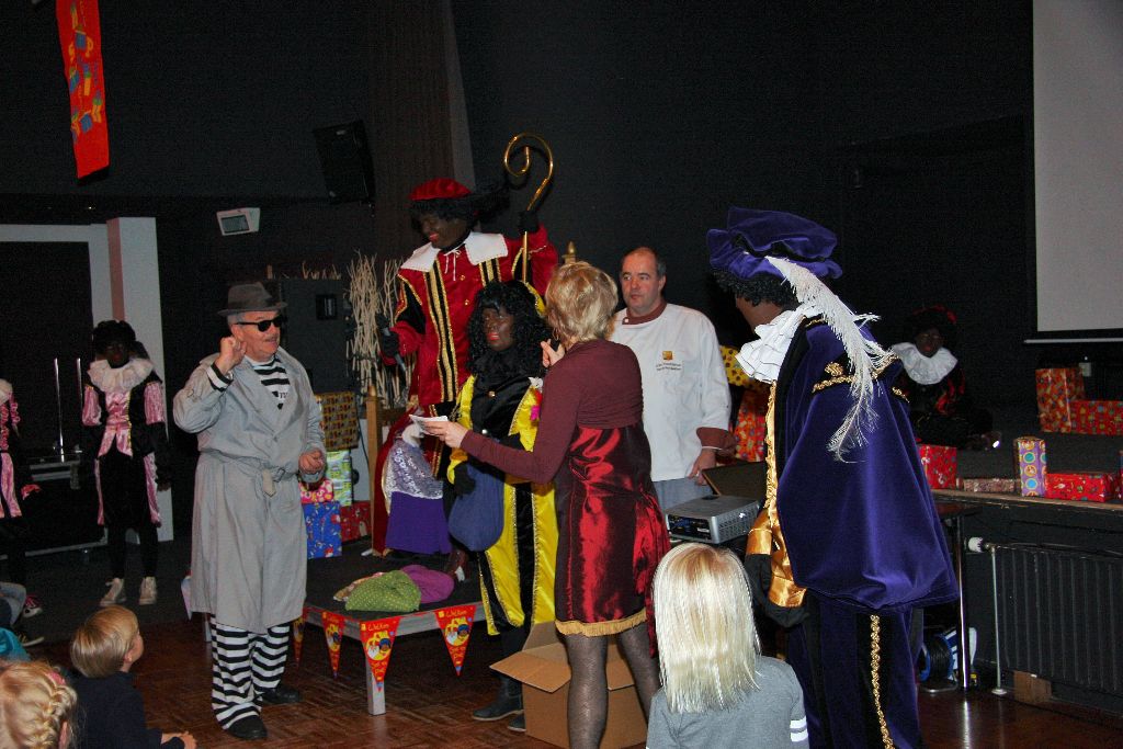 Eindelijk, Sinterklaas is weer in Zeijen. Met een stoet van mooie oude auto's arriveerde de Sint en zijn gevolg bij café Hingstman. Daar werd hij ontvangen door een enthousiaste menigte. De zaal zat vol met kinderen en hun ouders. Veel kinderen waren prachtig verkleed als kleine pietjes. Maar er was een probleem. De hoofdpiet miste drie pieten. De filmpiet bracht uitkomst. Zij liet met behulp van filmpjes zien wat er gebeurt was. Uiteindelijk waren alle pieten weer compleet. De hoofdpiet kon opgelucht adem halen. Al zijn pieten waren nu compleet maar er was toch iets vreemds gebeurd. Eén piet was blauw, een andere groen en één geel. Vreemd. Tussen de bedrijven door zong het pietenkoor samen met de zaal sinterklaas liedjes. De Sint was onder de indruk. Verder leerde dansjuf Helma de zaal de Sinterklaas dans. De Sint vond het schitterend. Daarna werd het toch echt tijd voor de Sint om naar zijn volgende afspraak te gaan maar gelukkig komt hij binnenkort weer terug in Zeijen. Op vijf december wordt hij ontvangen in De Zeijer Hoogte om daar met Zeijen zijn feestdag te vieren.