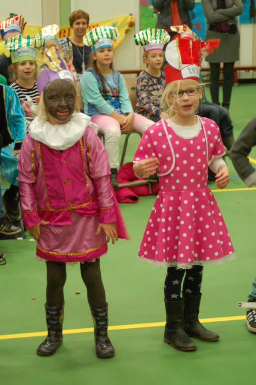 Sinterklaas had natuurlijk weer vele pieten meegenomen die spontaan meededen met de schitterende optredens die de kinderen uitvoerden voor de jarige Sinterklaas. De voetbal Piet had nog een kadootje meegenomen voor de kleuters nl. een mooie SVZ voetbal mascotte en ook meester Geert werd nog getrakteerd voor zijn 60ste verjaardag.