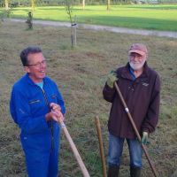 In augustus is de dorpsboomgaard gemaaid door de werkgroep Zeijerwiek. De begroeiing werd te hoog en dreigde de boompjes te verstikken. De meeste fruitbomen zijn goed aangeslagen en sommige dragen nu al enkele vruchten. De paar boompjes die het niet hebben gered worden dit najaar nog vervangen door nieuwe exemplaren beschikbaar gesteld door Landschapsbeheer Drenthe. Over enkele jaren zullen de wandelaars langs de Veentjesroute een appeltje of peer kunnen plukken voor onderweg. Overigens staan langs de wiek ook enkel appelbomen die vrucht dragen. Het zijn een soort wilde appels (van een weggegooid klokhuis?) maar de vruchten zijn wel te eten. |