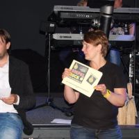 Daarna werden nog diverse mensen bedankt met een bos bloemen: de presentator van de quiz, de band en de man van de kermis en Henk en Janneke natuurlijk. Maar ook werd er binnen de feestcommissie afscheid genomen van Janny en Bert en werden Dieneke en Jan-Willem als nieuwe leden verwelkomd.