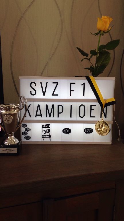 | Vanochtend vroeg in de kou moesten de jongens van F1 naar Gasselte om te voetballen. Met veel supporters zijn we afgereisd naar Gasselte, want als ze deze wedstrijd wonnen, werden ze Kampioen. Op een bevroren veld werd er gespeeld, beetje glad maar het eerste doelpunt werd snel gezet en daarna volgde er nog meer, uiteindelijk met 6-0 hebben de jongens gewonnen en zijn ze KAMPIOEN geworden!! Eerst even opwarmen in de kantine van Gasselte, daarna snel naar Zeijen waar de jongens als echte kampioenen op de kar door het dorp heen gingen! Terug bij het MFA kregen alle jongens een beker en een gele roos, dit was door 2 moeders geregeld, van de leiders kregen ze een medaille. Daarna heerlijk aan de patat met elkaar! En natuurlijk een feestje vieren met elkaar! Luuk, Sebastiaan, Tim, Jorn, Jarno, Teun, Jarno Denny, Koen en Mirza Gefeliciteerd Toppers En natuurlijk Mark, Andre, Johnno en Kenny Namens iedereen bedankt voor jullie inzet en Gefeliciteerd |
