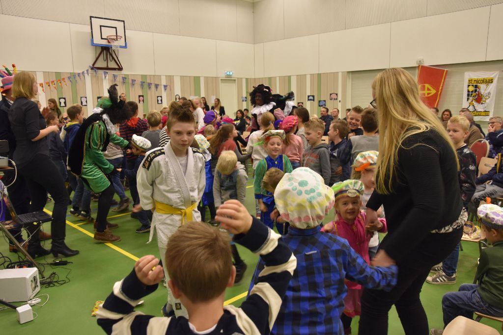 De kinderen hadden weer leuke acts ingestudeerd, Sinterklaas genoot er zichtbaar van.