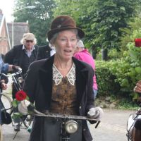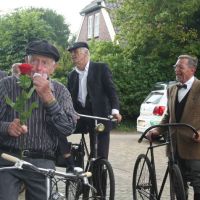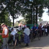 Dankzij het gezellige accordeonspel van Hendrik Pieters werden de deelnemers muzikaal onthaald bij de finish bij Café Hingstman. Ook de Historische Fietsvereniging was weer met een mooie club van de partij. |