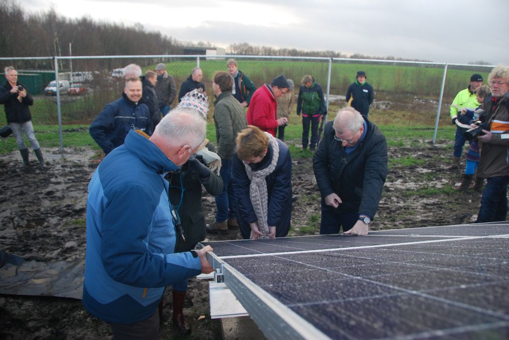 Vandaag was het zover de officiële opening van het Zonnepark Zeijen. Er liggen nu 2208 zonnepanelen die de energie voor 200 huishoudens kunnen opwekken. Wie had dat gedacht in april 2012 toen de werkgroep EnergieRijk Zeijen werd opgestart. Nu ruim 5 jaar later is het Zonnepark een feit. Vandaag gaven de heren van VON een korte terugblik op de ontwikkeling van het park. Dankzij de steun van gemeente Assen, Tynaarlo en de provincie is dit mogelijk gemaakt. VON heeft heel veel werk verricht, maar nu staat er een indrukwekkend park. Het laatste zonnepaneel werd door de wethouders Harmke Vlieg Kempe en Henk Lammers en gedeputeerde Tjisse Stelpstra gelegd.
