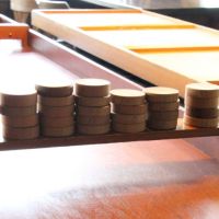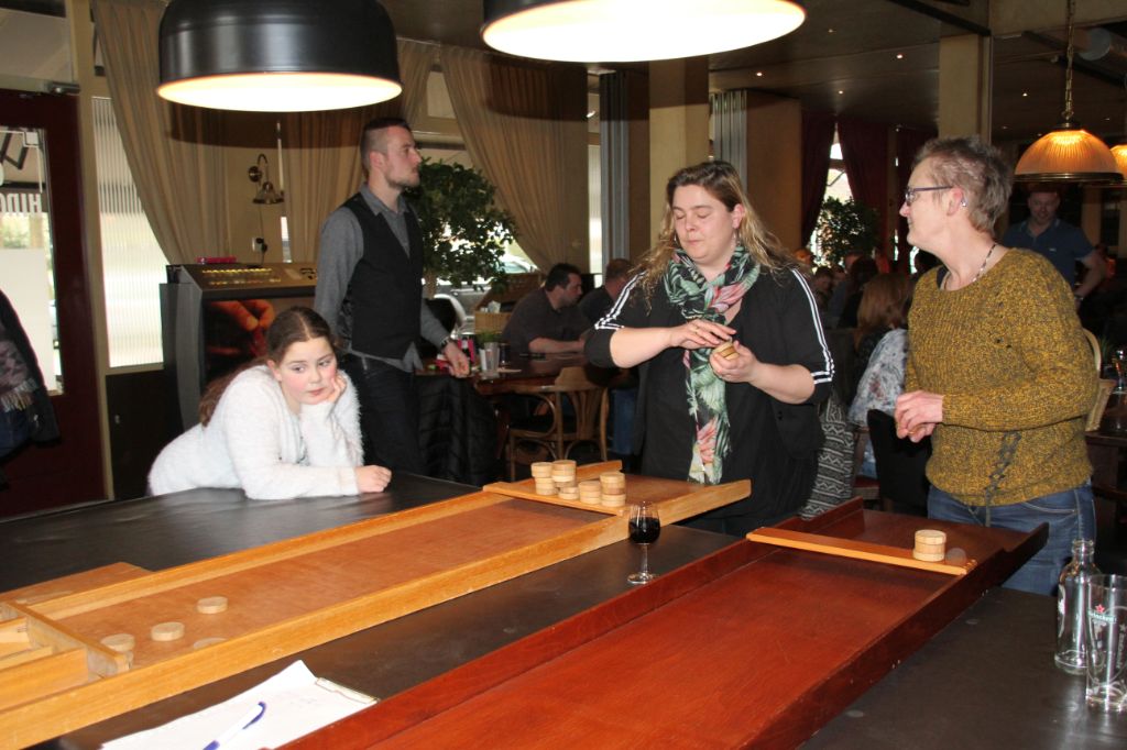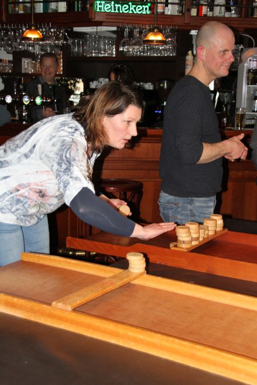 Naast de neuties stond er ook een boomstam voor het spijkers slaan klaar en op het biljard stonden 2 sjoelbakken. Ook hier werd veel gebruik van gemaakt tijdens deze gezellige middag.