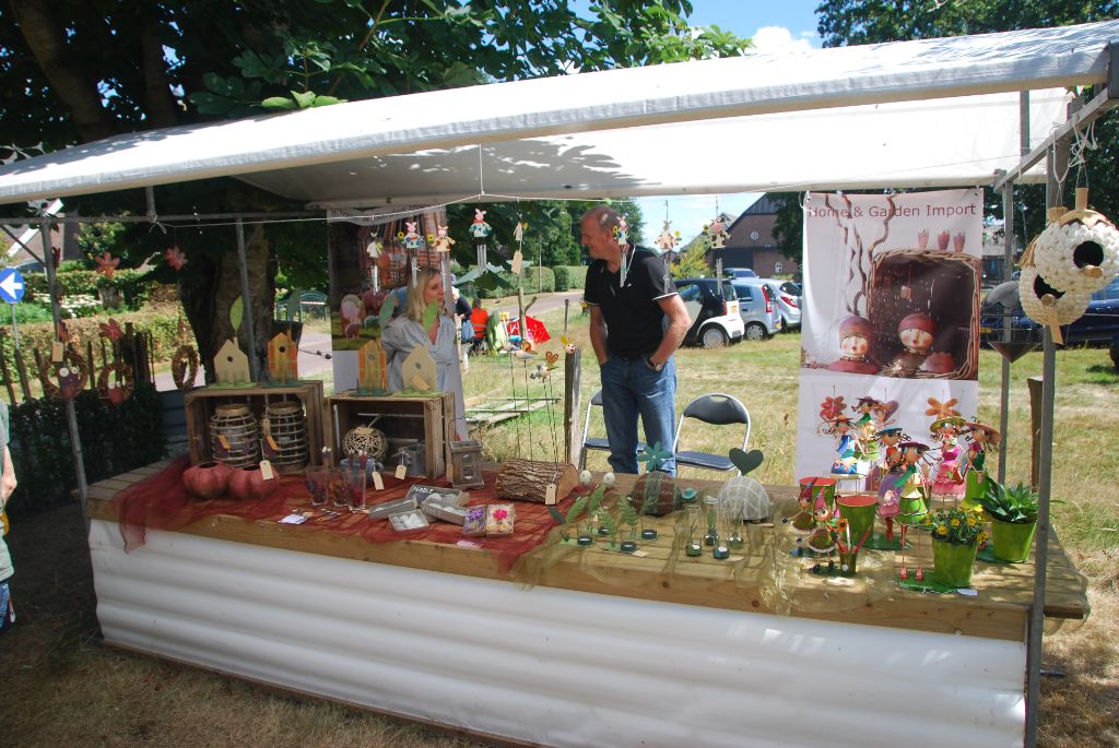 De midsummerfair is weer een feest voor iedereen die lekker wil slenteren langs allemaal leuke stands met hebbedingetjes. Van bloemen, shawls, schilderijen, sieraden, kleden, worsten uit Spanje en Frankrijk, hoeden, potten en pannen en curiosa. Te veel om op te noemen. Kijk maar even bij de foto's, bijna alle kramen staan er wel op. Dat het weer geweldig was en is is natuurlijk mooi meegenomen.