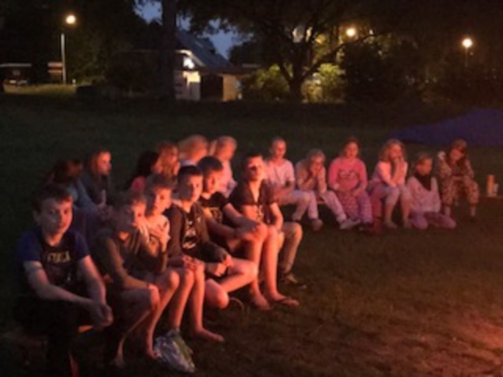 Helaas moesten we terug naar het kamp want de quizmaster had ook zijn programma, erg fanatiek vragen beantwoorden en geluiden raden. Daarna kwam een eng verhaal bij het kampvuur een hele grote slang, een Anaconda en een spin. Moe maar voldaan gingen de laatste kinderen rond half 1 op bed, niet slapen natuurlijk want zo lang mogelijk wakker blijven is ook een sport