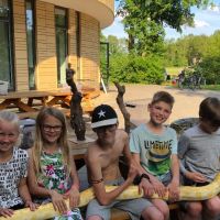 We gaan lekker naar huis na het ontbijt. Helaas dit keer geen smokkelspel en geen vlotten bouwen bij de wiek.