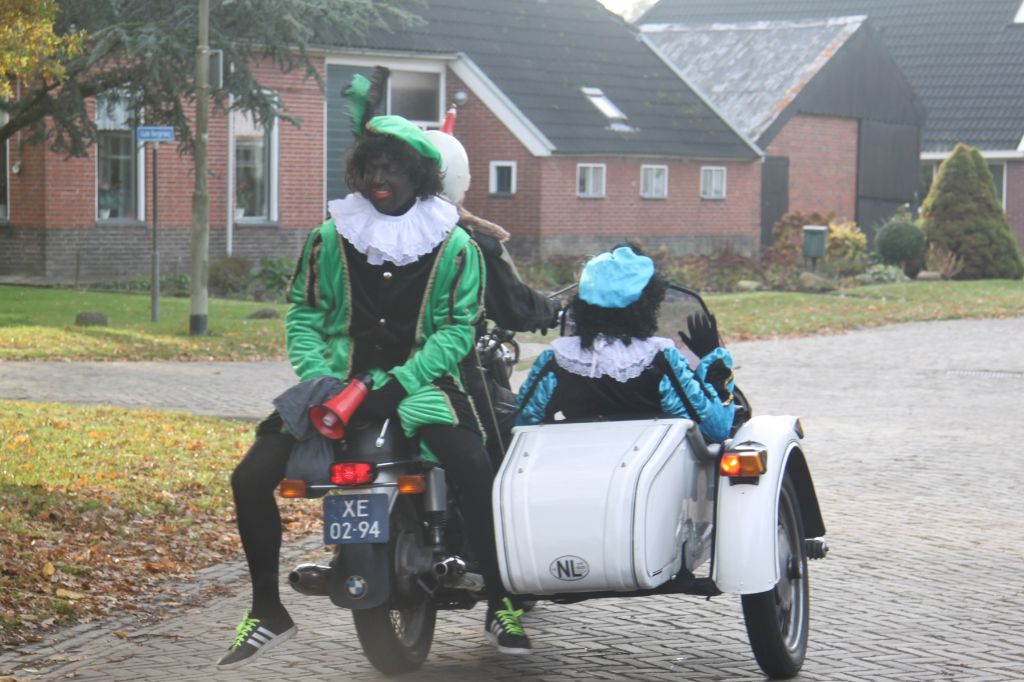Eindelijk was het dan zover. Sinterklaas komt aan in Zeijen. Eerst kwam er al 2 Pieten in een motor met zijspan, want die moesten natuurlijk de Sinterklaasvlag ophangen. Daarna kwam Sinterklaas zelf, in de koets was hij opgehaald door Henk Bousema.
