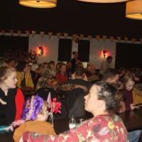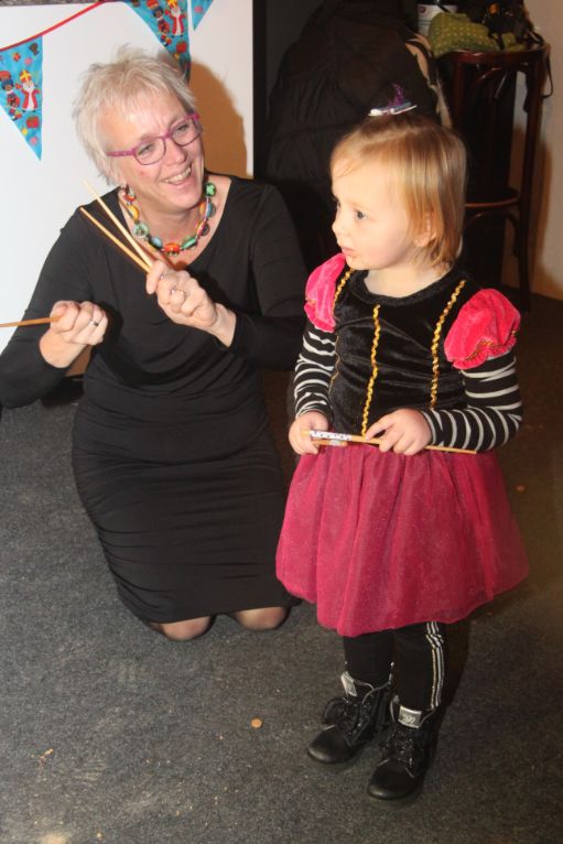 Voordat Sinterklaas na de pauze terugkwam werd er nog een dansje ingestudeerd waarbij met pollepels op pannen werd geslagen. Dit moest natuurlijk wel ten gehore worden gebracht toen de Sint met zijn hoofdpiet terugkwam in de zaal. Iedereen deed erg zijn best en het was dan ook een kabaal van jewelste. Janny kwam er achter dat ze eigenlijk alle opa's en oma's had overgeslagen, dus die werden nog even naar voren gehaald en mochten daar een Sinterklaasliedje zingen. Er was zelfs nog een overgrootoma (die was ook nog jarig). Daar heeft de hele zaal nog even voor gezongen.