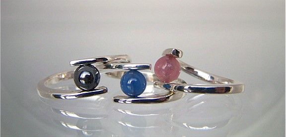 Je begint dus met twee basisoefeningen. Dit is als eerste een opdracht in messing (geel koper) en roodkoperdraad. Dit werkstukje heb ik zo bedacht dat er veel technieken in één stuk zitten. (foto 1) Daarna volgt een zilveren ring, met weer andere technieken. (foto 2) Hier komt een edelsteenkraal naar je eigen keuze in. Na het maken van deze beide, weet je ook redelijk de weg in het atelier. Over beide opdrachten wordt doorgaans twee lessen gedaan. De eerste kaart is dan op.