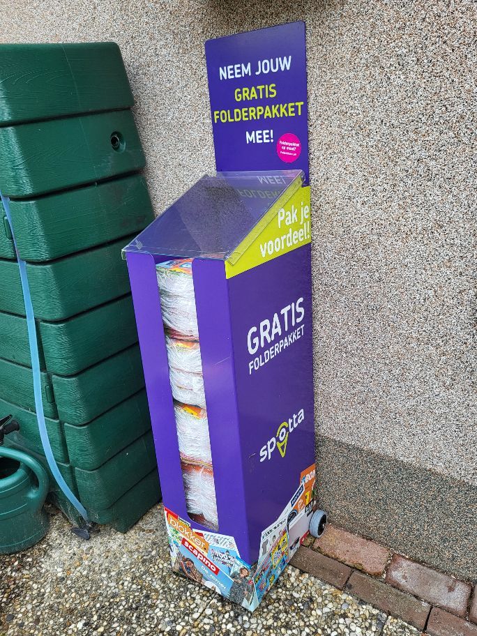 Gelukkig is er sinds enkele weken een goede oplossing: Bij Reproservice aan de Hoofdstraat 41 staat een standaard van Spotta met daarin vanaf iedere donderdag weer een nieuw folderpakket, om gratis mee te nemen. Loop eens langs en neem een pakketje of 2 mee. Wie weet vind je buurvrouw het ook leuk om weer een pakket te krijgen?