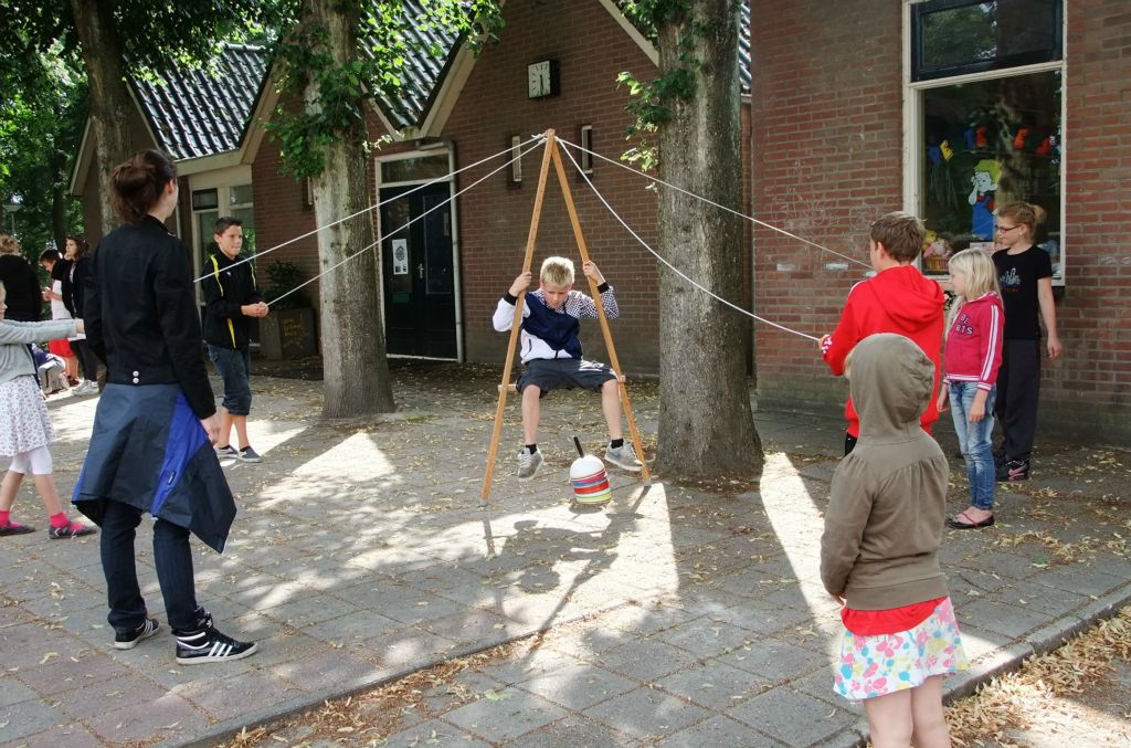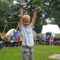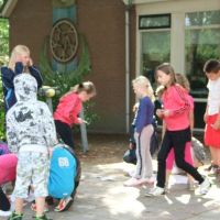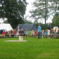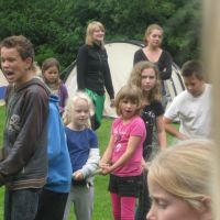 Om acht uur was de tractortram er om de eerste groepen naar het bos te brengen. Daar had Jarno een puzzeltocht uitgezet. Onderweg moesten ze allerlei opdrachten doen en ze hebben zelfs een toverdrank moeten maken met “echte” kikkers. Na zo'n anderhalf uur lopen kwamen de eersten weer op het kamp. Het kampvuur was al aan en de marshmallows konden worden geroosterd. Tegen 23.00 uur hebben groep 3 t/m 5 een hypnose show gezien, opgezet door Annelou en Eva. De kinderen hebben hier erg van genoten. Aansluitend tandenpoetsen en de tent in. Hier konden ze nog even gezellig met elkaar kletsen en daarna gaan slapen. Bij sommige tenten was het nog een tijdje onrustig, maar nadat ook de laatste jonge kinderen goed in de slaapzakken lagen werd het rustig. Groep 6, 7 en 8 was zelf al in de tent gekropen of het hun eigen tent was????? Ze hebben een geweldig leuke nacht gehad en bijna niet geslapen. Bij het kampvuur heeft Imre nog een paar mooie muzikale intro's ter gehore gebracht op zijn gitaar waar wij en de oudere jeugd erg van genoten hebben. Intussen had de catering ons allen voorzien van een hapje en een drankje. Geweldig! Na een tijdje te hebben nagepraat ging ook de begeleiding het bed op zoeken, op een aantal uitzonderingen na. En wat is er dan mooier als je de haan hoort kraaien en de eerste jonge kinderen zich met hun duffe gezichtjes de tent uit komt. Ze kwamen gezellig bij ons en het nog brandende kampvuur zitten om verder wakker te worden en warm te blijven. Dauwtrappen olv Annelou en voor het eerst was ook groep 6, 7 en 8 van de partij. Grote klasse allemaal. Na een heerlijk ontbijt hebben we een vossenjacht gedaan waar je op zoek moest naar de schat. Sommige vossen waren onherkenbaar vermomd. Om 11.30 uur waren alle kinderen weer terug op het kamp. Na een heerlijk broodje knakworst konden de kinderen nog heerlijk vrij spelen. Het weer gooide een beetje roet in het eten, waardoor alles iets eerder was afgelopen dan anders. Inmiddels hebben de kinderen (en de begeleiding) hun verloren slaap weer ingehaald. Het was een geslaagd tentenkamp waarbij de organisatie iedere vrijwilliger wil bedanken voor hun bijdrage!