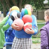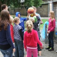 Om 16.00 uur kwamen de kinderen om hun tenten op te zetten met behulp van de ouders. Het was jammer dat met het openen van het kamp hetbegon te regenen, maar gelukkig klaarde het snel weer op en konden we beginnen het spellencircuit (welke was uitgezet door John en Guus) op het plein. Er waren erg leuke spelonderdelen waarvan ik ook een aantal nog niet eerder had gezien. Ze moesten stokvangen, blindemannetje, hoeveel ballen 1 persoon kan vasthouden (14 st.????), enz.