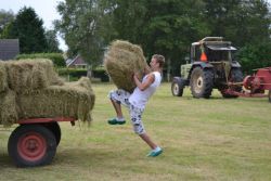 Doordat we behoorlijk wisselvallig weer hebben de laatste tijd is het lastig inschatten wanneer je kunt hooien. Dat geldt voor de "grote" boeren maar zeker ook voor de hobbyboeren.Wij wilden graag een stukje van ons land maaien maar wat zou het beste moment zijn. Ik dacht als ik Jacob vraag, of hij dat van ons wil maaien als hijzelf gaat maaien, dan komt het vast goed. Onze buren de familie Strijker waren ons voor, een paar dagen eerder werd het landje tegenover ons huis gemaaid. Jeroen had het er maar druk mee schudden, schudden, nog eens schudden, weer een bui, maar weer schudden. Op zondag werd ons gras gemaaid, eind van de dag nog een beste bui erin maar maandag en dinsdag zou het goed weer zijn. Op maandag gevraagd of Jeroen en Johnno ons gras ook wilden schudden. Dat was geen probleem. 's Morgens en 's middag werd er geschud. Jacob was die morgen ook bezig en dacht ik neem dat van de buren ook even mee. Jarno loste hem af en kreeg te horen dat ons gras ook geschud moest worden. Opgeteld is het die maandag dus 4x geschud. Op dinsdag zou het in de pak komen. Ik kreeg opdracht dat ik moest zorgen dat het 's morgens nog geschud werd en dan in zweel gelegd werd voor de pers. Jacob gebeld of hij dat voor ons wilde doen, geen probleem, het kwam wel voor elkaar. Loonbedrijf Bousema zou rond drie uur komen om te persen. In de middag maar eens even polshoogte nemen, nog geen pakken. Maar nog geen kwartier later was de pers er. Bijna 3 pakken, een beetje gras geleend bij Jacob en zo hadden we dan toch 3 pakken. Niet al te lange tijd daarna was de wikkelaar er. Daarna kwam de shovel het erf op stuiven en luttele minuten later was ons hooi avontuur achter de rug. Dus op huis aan. De buren hadden inmiddels de hooipers ook op het land. Gauw mijn fototoestel gehaald want wanneer zie je nog een " oude" pers die kleine pakjes maakt. De jongens van Abel; Roelof en Jan zaten op de tractor en maakten de pakjes. Jeroen zat op hun eigen tractor met wagen. Johnno gooide de pakjes erop. Jan was aan het bijharken. Henk keek het even aan en besloot ook mee te helpen. Mooie nostalgie vond ik, zweten vonden de heren. Na het werken was er een wel verdiende borrel, vooral ook voor Alida en mij. Wij hadden immers lopen duimen dat het droog bleef. De wagen de schuur in en de regen kon gaan vallen, dat gebeurde ook niet lang daarna.